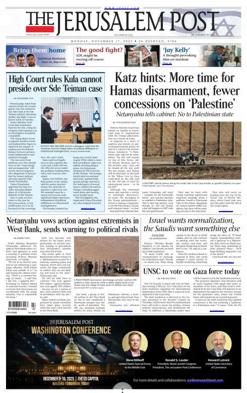 Interprétation : Le JPost adopte un angle stratégique : l’axe gouvernemental reste inflexible sur la question palestinienne. Le journal analyse la situation en regard des discussions régionales, notamment avec Washington et Riyad.