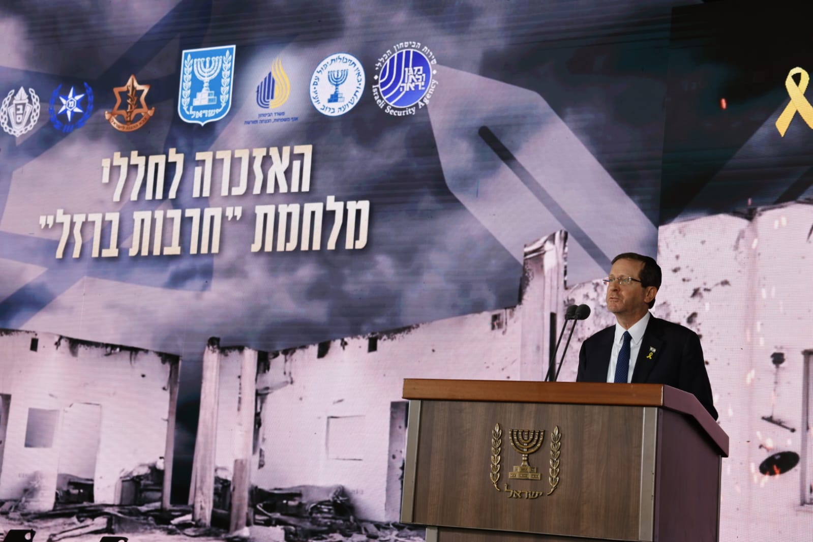 Le président Itshak Herzog a lui aussi ouvert son intervention par un message aux familles endeuillées : « Avec la permission du Ciel et de l'assemblée, je demande l'autorisation de me tenir devant vous aujourd'hui, familles endeuillées chéries et précieuses, en tant qu'émissaire d'un peuple entier, pour parler à vos cœurs. »