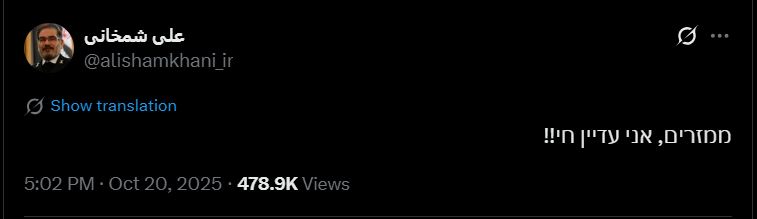 Après que la vidéo a fait le buzz sur les réseaux sociaux, Ali Shamkhani a publié un tweet en hébreu laissant sous-entendre qu'il soupçonne Israël d'être derrière cette divulgation: ''Salauds, je suis toujours en vie''.