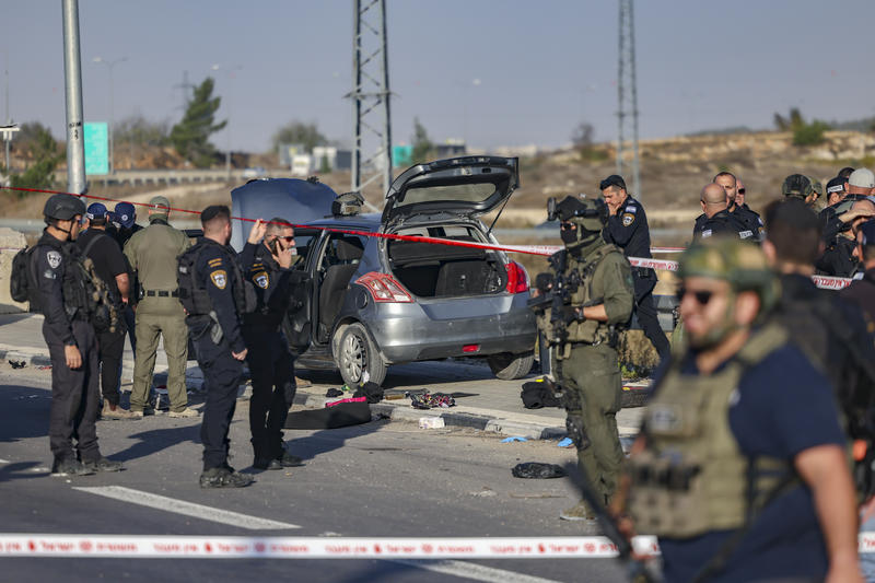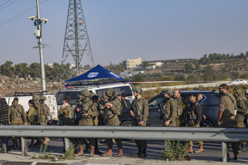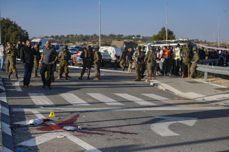 *Chaim Goldberg/Flash90: Les forces de sécurité israéliennes et les équipes de secours sur les lieux d’un attentat au carrefour de Goush Etzion, en Judée-Samarie, le 18 novembre 2025