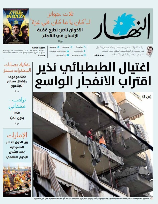 Le quotidien An-Nahar, souvent critique envers le Hezbollah, va encore plus loin. Pour lui, la frappe contre Tabatabaï symbolise un tournant : Israël ne se fixe plus aucune limite. L’élimination intervient quatre jours avant l’anniversaire de l’accord de cessation des hostilités entre Israël et le Liban — un anniversaire désormais vidé de son sens.