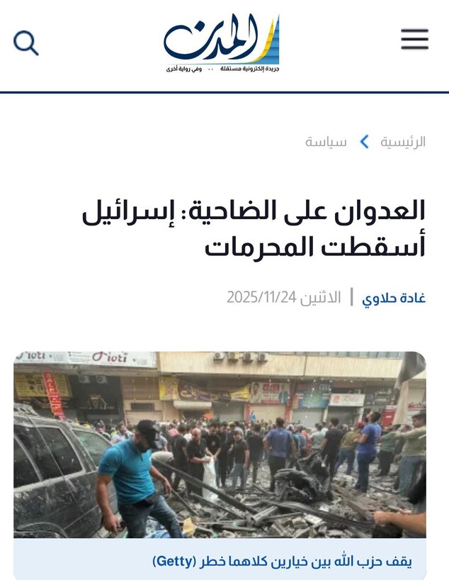 Le quotidien libanais Al-Modon décrit la situation en termes tranchés : Israël aurait « brisé une nouvelle ligne rouge » en frappant en plein cœur de la banlieue sud de Beyrouth. Le journal y voit l’ouverture d’une nouvelle phase, annoncée par Benjamin Netanyahou il y a quelques jours, marquée par une intensification des frappes israéliennes — drones, aviation, opérations ciblées. Selon Al-Modon, le Hezbollah se retrouve coincé entre deux extrêmes : riposter au risque d’apparaître comme l’agresseur aux yeux de la communauté internationale et de précipiter le Liban dans une guerre totale ou se contenir au risque d’annuler de facto ses capacités de dissuasion acquises au fil des années.