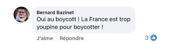 Pour ce faire, il a publié un commentaire au caractère antisémite explicite: ''Oui au boycott! La France est trop youpine pour boycotter!''.