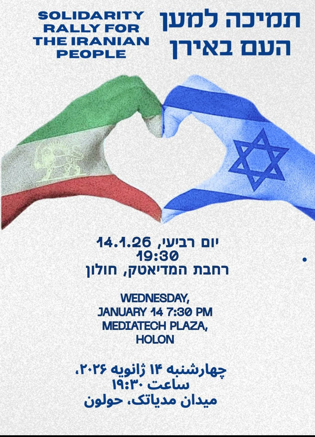 Une manifestation de soutien au peuple iranien est organisée demain (mercredi) à la médiathèque de Holon.