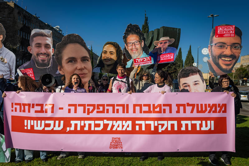 Manifestation devant la Knesset contre le gouvernement et pour une commission d'enquête étatique. Photo by Yonatan Sindel/Flash90