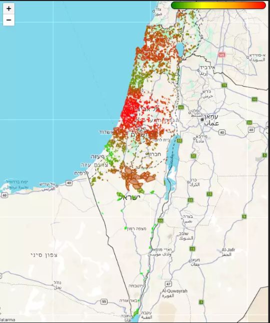 A Petah Tikva, Guivat Shmuel et dans le moshav Nehalim aussi, les sirènes ont retenti 55 fois en 6 jours. À leurs côtés, la liste des localités les plus attaquées comprend également Holon, Ramat Gan (ouest), Or Yehuda et Bnei Brak. Dans ces localités les attaques se sont intensifiées, avec un bond de 12 à 15 sirènes les deux derniers jours.